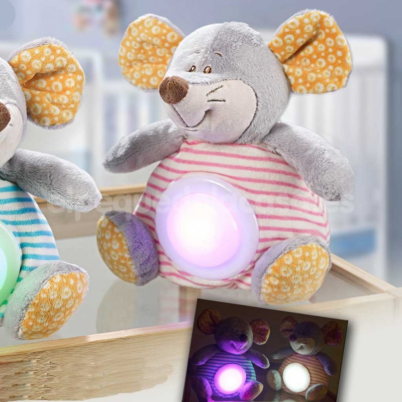 Gracioso peluche en forma de ratón que tiene una luz en la barriguita, se enciende presionando. Ideal como quitamiedos d... Ver descripción completa