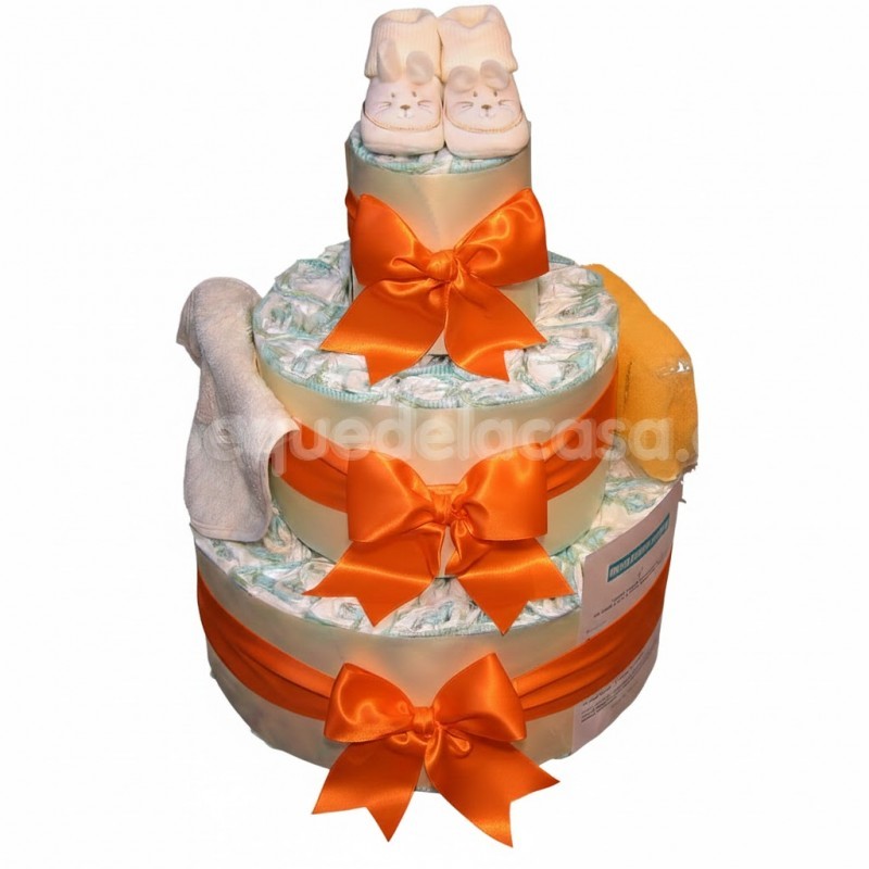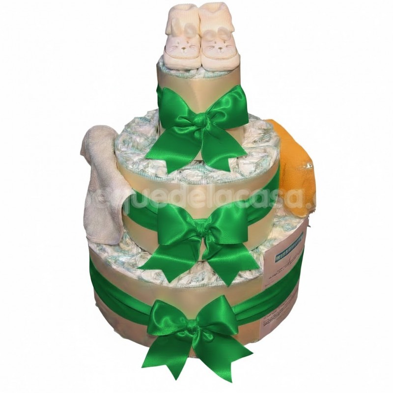 Las tartas de pañales siempre son bienvenidas por sus componentes prácticos para cuidar al bebé. Los pañales y otros com... Ver descripción completa